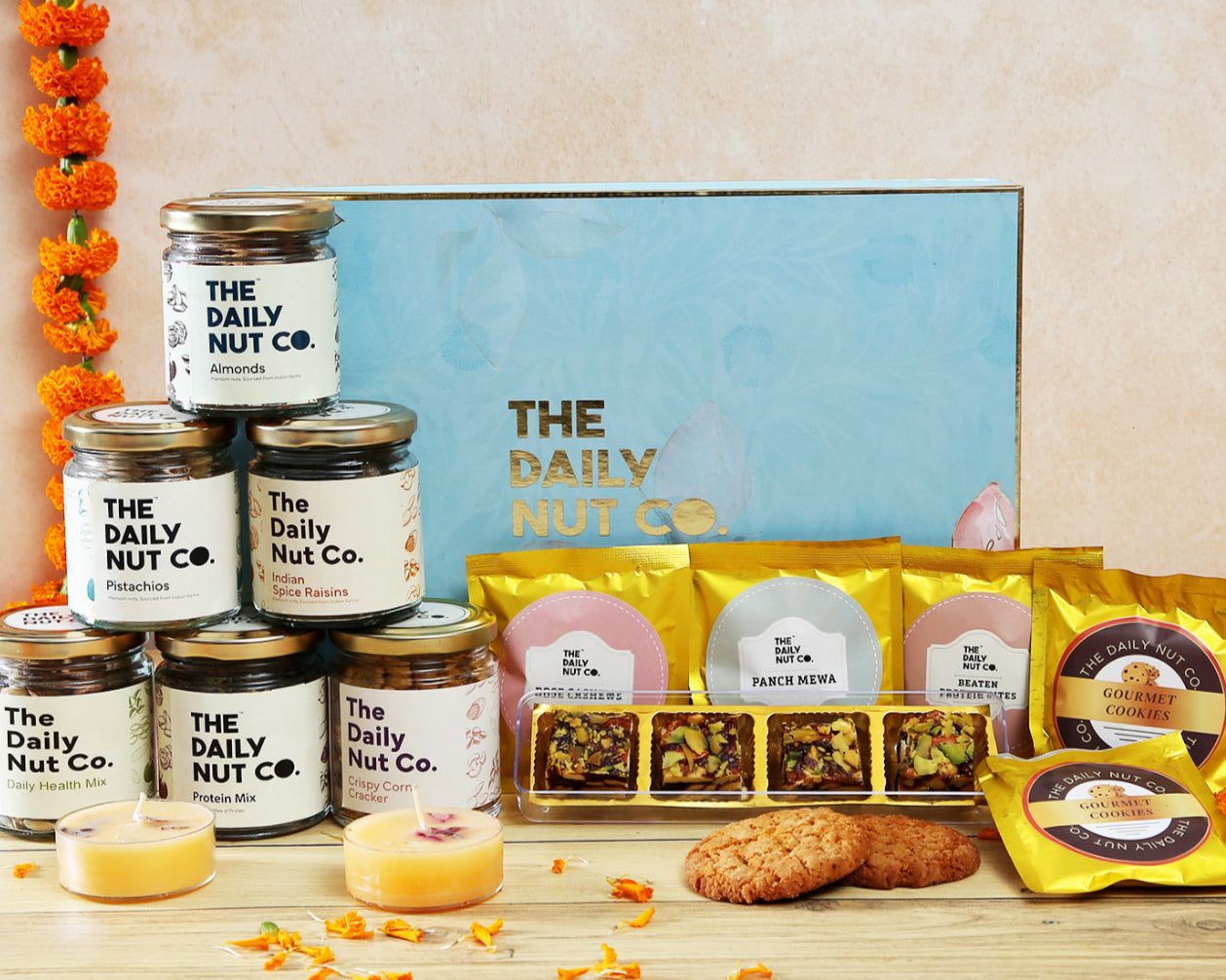 A premium and generously curated gifting box that brings together wholesome nutrition and festive indulgence. Packed with premium nuts, health mixes, crunchy snacks, sugar-free mithai, and gourmet cookies, this hamper is ideal for festive celebrations, corporate gifting, and thoughtful wellness-focused presents.
